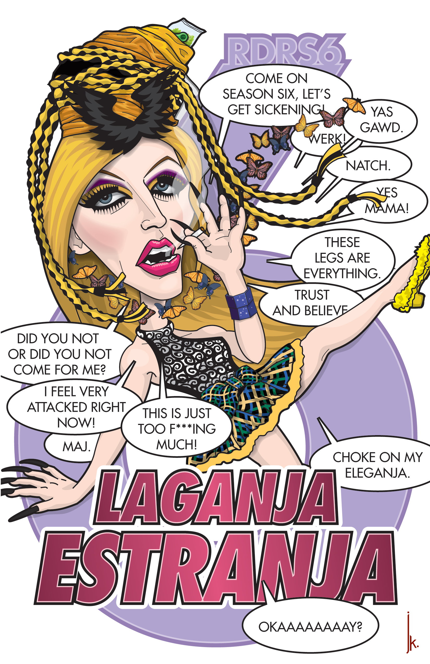 A series of illustrations caricaturing the cast of RuPaul's Drag Race Season 6. Titled by the good folks at Drag Official, the series combines the most memorable (and shady) looks and moments of each of the 14 queens competing.